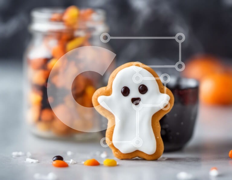 Υπάρχει δυνατότητα προσωποποίησης με δική σας φωτογραφία και προσαρμογής διαστάσεων κατόπιν παραγγελίας. Το συγεκεριμενο puzzle παρουσιαζει Αυτή η εικόνα δείχνει ένα μπισκότο σε σχήμα φαντάσματος τοποθετημένο πάνω από ένα πορτοκαλί βάζο με ζαχαρωτά, συμβολίζοντας τους εορτασμούς του Halloween. Το τραπέζι στολίζεται με διάσπαρτα κομμάτια καραμέλας, δημιουργώντας μια γιορτινή ατμόσφαιρα. Αφεθείτε στο τρομακτικό πνεύ