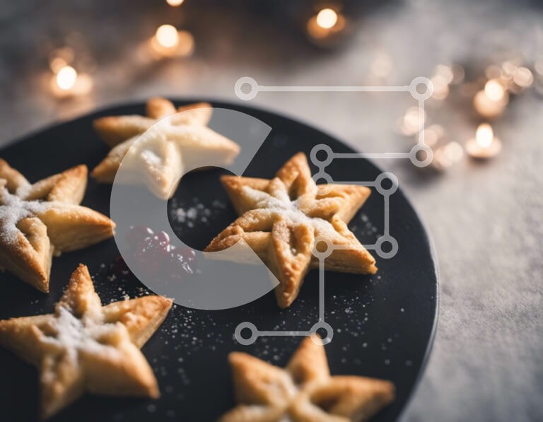 Υπάρχει δυνατότητα προσωποποίησης με δική σας φωτογραφία και προσαρμογής διαστάσεων κατόπιν παραγγελίας. Το συγεκεριμενο puzzle παρουσιαζει Αυτή η εικόνα παρουσιάζει πολλά μπισκότα σε σχήμα αστεριού τοποθετημένα σε ένα μαύρο πιάτο. Κάθε μπισκότο είναι όμορφα διακοσμημένο με ζάχαρη άχνη και φαίνεται να έχει κοπεί χρησιμοποιώντας κουπάτ μπισκότων. Το τραπέζι φωτίζεται από γύρω φωτάκια, δημιουργώντας μια γιορτινή και