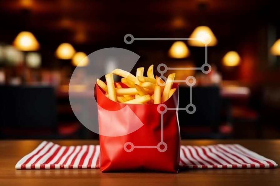 Υπάρχει δυνατότητα προσωποποίησης με δική σας φωτογραφία και προσαρμογής διαστάσεων κατόπιν παραγγελίας. Το συγεκεριμενο puzzle παρουσιαζει Η εικόνα παρουσιάζει μια μερίδα τηγανιτές πατάτες που παρουσιάζονται σε ένα έντονο κόκκινο δοχείο, τοποθετημένο σε ένα ξύλινο τραπέζι. Οι πατάτες είναι χρυσαφένιες και τραγανές, ξεχειλίζουν από το δοχείο. Μια ριγέ χαρτοπετσέτα σε κόκκινο και λευκό είναι τοποθετημένη κάτω από τ