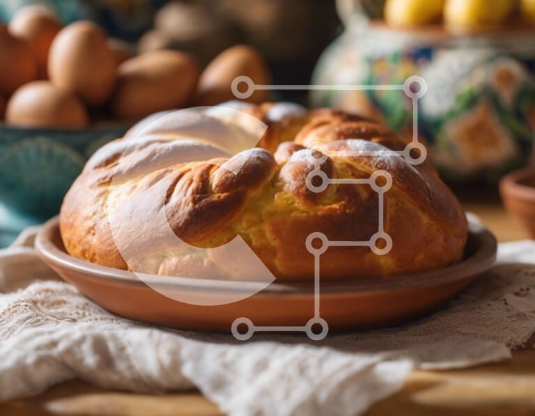 Υπάρχει δυνατότητα προσωποποίησης με δική σας φωτογραφία και προσαρμογής διαστάσεων κατόπιν παραγγελίας. Το συγεκεριμενο puzzle παρουσιαζει Αυτή η εικόνα δείχνει ένα μπολ με ψωμί, ένα αυγό και διάφορα μπολ με φρούτα και λαχανικά. Το ψωμί είναι τοποθετημένο στο κέντρο του τραπεζιού, πλαισιωμένο από αυγά και στις δύο πλευρές. Επιπλέον, υπάρχουν διάσπαρτα κομμάτια από μήλα, πορτοκάλια, σταφύλια και μπανάνες. Ένα μον