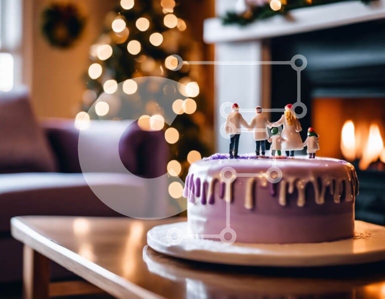 Υπάρχει δυνατότητα προσωποποίησης με δική σας φωτογραφία και προσαρμογής διαστάσεων κατόπιν παραγγελίας. Το συγεκεριμενο puzzle παρουσιαζει Αυτή η εικόνα δείχνει ένα μωβ κέικ με ειδώλια τοποθετημένα στην κορυφή. Η τούρτα είναι όμορφα διακοσμημένη και υπάρχουν διάφορα κεριά διάσπαρτα γύρω της, υποδηλώνοντας μια γιορτή. Στο βάθος διακρίνεται ένα τζάκι που υποδηλώνει ότι το πάρτι γίνεται σε εσωτερικούς ή εξωτερικούς