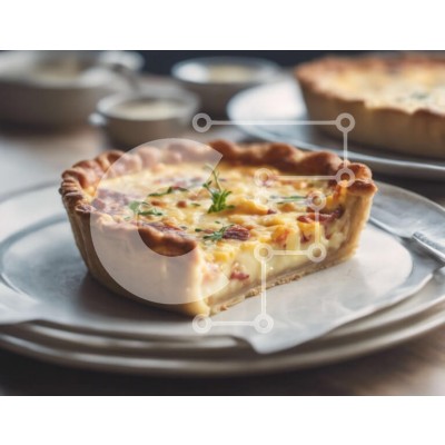 Υπάρχει δυνατότητα προσωποποίησης με δική σας φωτογραφία και προσαρμογής διαστάσεων κατόπιν παραγγελίας. Το συγεκεριμενο puzzle παρουσιαζει Αυτή η εικόνα δείχνει ένα νόστιμο κις που σερβίρεται σε δύο πιάτα. Το ένα πιάτο περιέχει μια μισοκομμένη κις τοποθετημένη στο τραπέζι, ενώ το άλλο πιάτο είναι άδειο. Υπάρχουν πολλά μικρά μπολ σε κοντινή απόσταση, πιθανώς για το σερβίρισμα καρυκευμάτων ή πρόσθετων υλικών. Μια γ