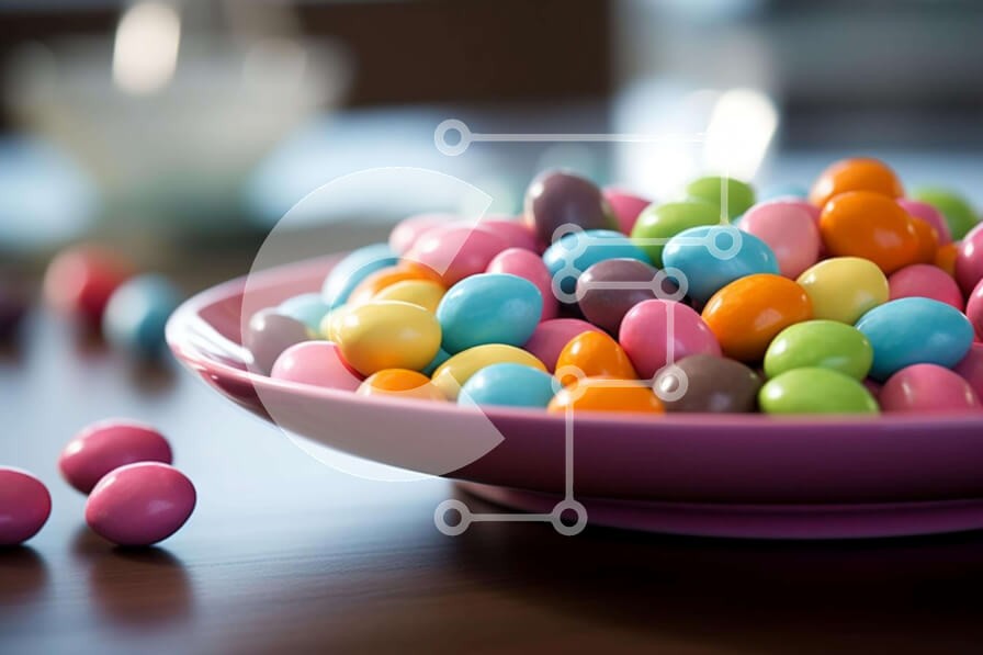 Υπάρχει δυνατότητα προσωποποίησης με δική σας φωτογραφία και προσαρμογής διαστάσεων κατόπιν παραγγελίας. Το συγεκεριμενο puzzle παρουσιαζει Η εικόνα δείχνει ένα ροζ μπολ γεμάτο με πολύχρωμα ζαχαρωτά, απλωμένα στην επιφάνεια του τραπεζιού. Πολλά μπουκάλια νερό είναι επίσης ορατά σε κοντινή απόσταση, υπονοώντας την παρουσία ποτών στο δωμάτιο. Η συνολική σκηνή αποπνέει χαρά και ευτυχία μέσα από τη ζωντανή εμφάνιση τω