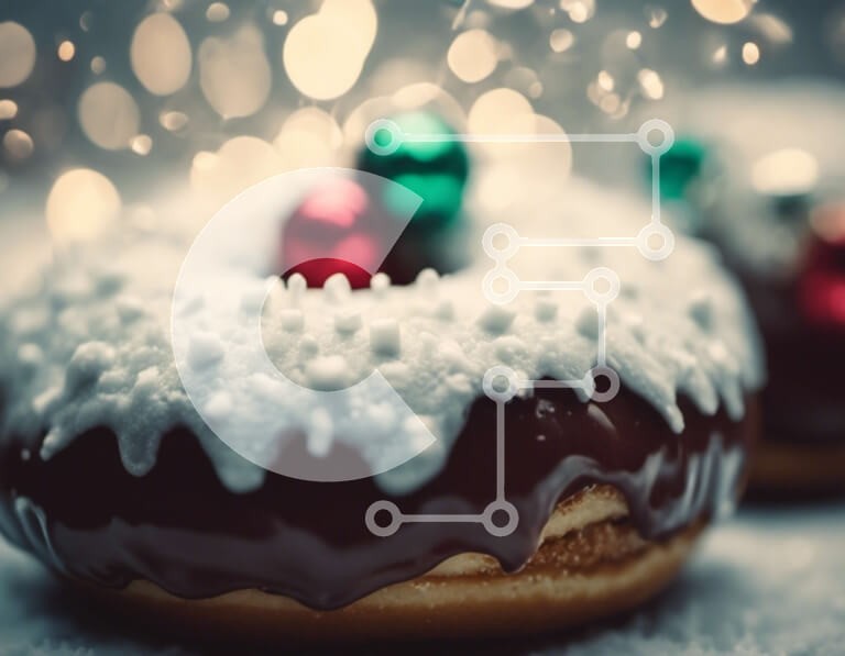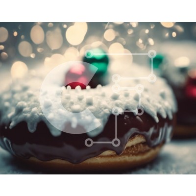 Υπάρχει δυνατότητα προσωποποίησης με δική σας φωτογραφία και προσαρμογής διαστάσεων κατόπιν παραγγελίας. Το συγεκεριμενο puzzle παρουσιαζει Αυτή η εικόνα παρουσιάζει δύο ντόνατς σοκολάτας καλυμμένους με γλάσο και διακοσμημένους με κόκκινα και πράσινα στολίδια. Τοποθετούνται σε χιονισμένο φόντο, ενισχύοντας τη γιορτινή ατμόσφαιρα. Η παρουσία διάσπαρτων φώτων υποδηλώνει τη διακόσμηση των διακοπών στο περιβάλλον. Έν