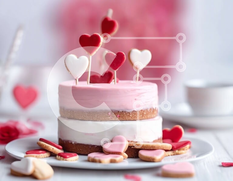 Υπάρχει δυνατότητα προσωποποίησης με δική σας φωτογραφία και προσαρμογής διαστάσεων κατόπιν παραγγελίας. Το συγεκεριμενο puzzle παρουσιαζει Αυτή η εικόνα παρουσιάζει ένα κομψό επιδόρπιο για την Ημέρα του Αγίου Βαλεντίνου με ένα κέικ τριών επιπέδων διακοσμημένο με ροζ και λευκές καρδιές. Υπάρχουν επίσης μπισκότα τοποθετημένα πάνω από το κέικ, προσθέτοντας μια επιπλέον πινελιά γλυκύτητας. Ένα φλιτζάνι υπάρχει επίσης