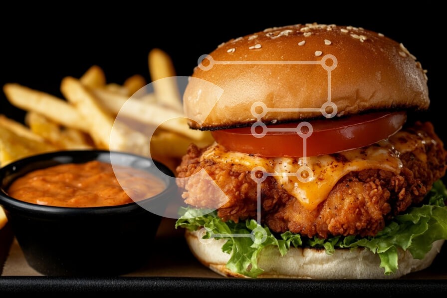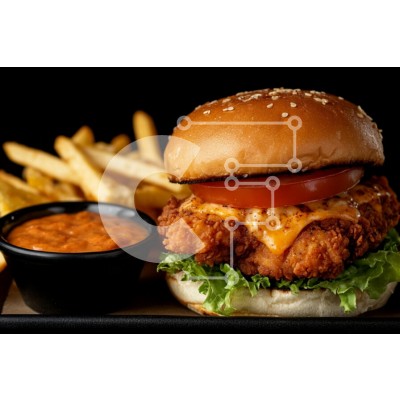 Υπάρχει δυνατότητα προσωποποίησης με δική σας φωτογραφία και προσαρμογής διαστάσεων κατόπιν παραγγελίας. Το συγεκεριμενο puzzle παρουσιαζει Αυτή η εικόνα παρουσιάζει ένα νόστιμο τηγανητό σάντουιτς κοτόπουλου τοποθετημένο σε ένα τσουρέκι με σουσαμιού, με μαρούλι, μια φέτα ντομάτα και λιωμένο τυρί. Το σάντουιτς συνοδεύεται από μια μερίδα τραγανές τηγανητές πατάτες και ένα μικρό μπολ με σάλτσα ντιπ. Το φόντο είναι σκ