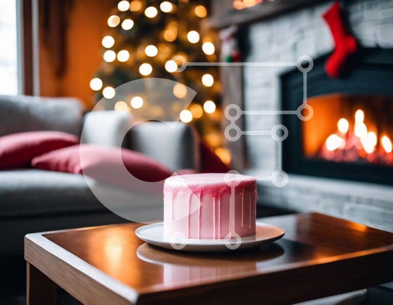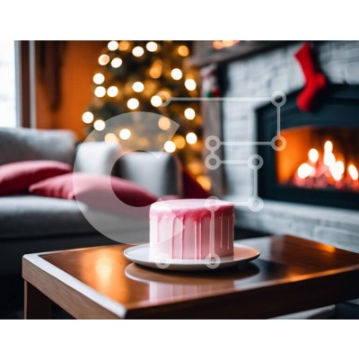 Υπάρχει δυνατότητα προσωποποίησης με δική σας φωτογραφία και προσαρμογής διαστάσεων κατόπιν παραγγελίας. Το συγεκεριμενο puzzle παρουσιαζει Αυτή η εικόνα δείχνει ένα ροζ κέικ τοποθετημένο πάνω από ένα τραπεζάκι σαλονιού μπροστά από ένα ανοιχτό τζάκι. Η τούρτα είναι όμορφα διακοσμημένη με κόκκινα, λευκά και πράσινα στολίδια, υποδηλώνοντας ότι είναι προετοιμασμένη για την περίοδο των γιορτών. Πολλά κεριά είναι στρατ