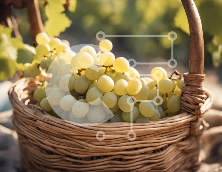 Υπάρχει δυνατότητα προσωποποίησης με δική σας φωτογραφία και προσαρμογής διαστάσεων κατόπιν παραγγελίας. Το συγεκεριμενο puzzle παρουσιαζει Αυτή η εικόνα παρουσιάζει ένα καλάθι γεμάτο με ώριμα λευκά σταφύλια. Τα σταφύλια είναι τακτοποιημένα στο καλάθι, με μερικά να χύνονται στην άκρη. Το καλάθι είναι από ψάθινο και έχει λαβή στο πλάι. Στο βάθος, υπάρχει ένα βραχώδες έδαφος με δέντρα και άλλη βλάστηση. Ένα μοναδικ