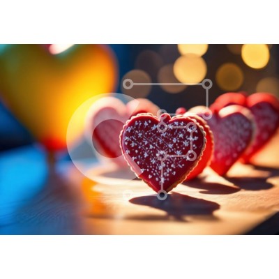 Υπάρχει δυνατότητα προσωποποίησης με δική σας φωτογραφία και προσαρμογής διαστάσεων κατόπιν παραγγελίας. Το συγεκεριμενο puzzle παρουσιαζει Αυτή η εικόνα παρουσιάζει πολλά κόκκινα μπισκότα σε σχήμα καρδιάς τοποθετημένα σε ένα τραπέζι σε σχήμα καρδιάς. Τα μπισκότα είναι στολισμένα για την ημέρα του Αγίου Βαλεντίνου, ενώ υπάρχουν και άλλα διακοσμητικά όπως κεριά και μπαλόνια διάσπαρτα γύρω από το τραπέζι. Δημιουργεί