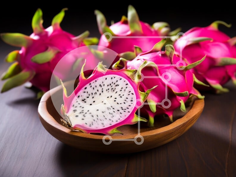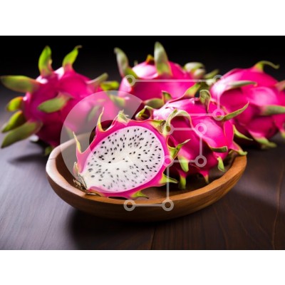 Υπάρχει δυνατότητα προσωποποίησης με δική σας φωτογραφία και προσαρμογής διαστάσεων κατόπιν παραγγελίας. Το συγεκεριμενο puzzle παρουσιαζει Αυτή η εικόνα παρουσιάζει ζωντανά φρούτα δράκου, γνωστά και ως pitaya, όμορφα διατεταγμένα σε ένα ξύλινο μπολ. Οι καρποί είναι εντυπωσιακά ροζ με λέπια με πράσινες μύτες και ένα φρούτο κόβεται στη μέση για να αποκαλύψει τον λευκό πολτό του με στίγματα με μικροσκοπικούς μαύρους