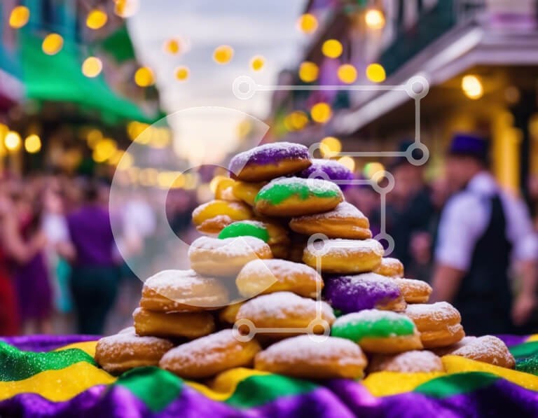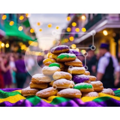 Υπάρχει δυνατότητα προσωποποίησης με δική σας φωτογραφία και προσαρμογής διαστάσεων κατόπιν παραγγελίας. Το συγεκεριμενο puzzle παρουσιαζει Αυτή η εικόνα παρουσιάζει μια στοίβα από ντόνατς στολισμένα με ζάχαρη άχνη και πολύχρωμα πασπαλίσματα. Τα ντόνατς είναι πιθανότατα μέρος του εορτασμού του Mardi Gras της Νέας Ορλεάνης, μιας ετήσιας εκδήλωσης γνωστής για τις ζωντανές παρελάσεις και τις εκδηλώσεις της. Στη σκηνή