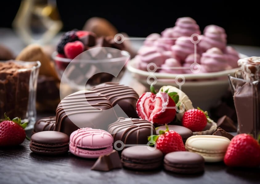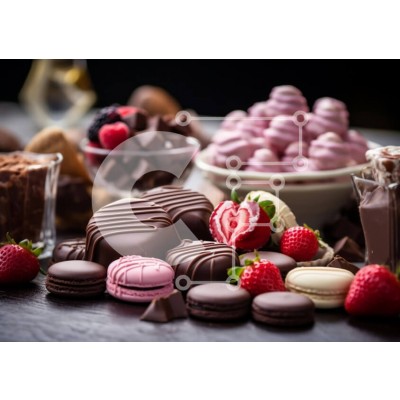 Υπάρχει δυνατότητα προσωποποίησης με δική σας φωτογραφία και προσαρμογής διαστάσεων κατόπιν παραγγελίας. Το συγεκεριμενο puzzle παρουσιαζει Η εικόνα παρουσιάζει μια ποικιλία από επιδόρπια με βάση τη σοκολάτα, όπως μπισκότα, μακαρόν και φράουλες. Αρκετά μπολ με διαφορετικά είδη γλυκών υπάρχουν επίσης στο τραπέζι, προσθέτοντας στην επίδειξη των λιχουδιών. Η σκηνή αποπνέει γλυκύτητα και προσκαλεί την απόλαυση σε μια