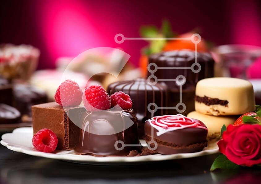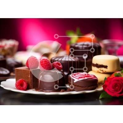 Υπάρχει δυνατότητα προσωποποίησης με δική σας φωτογραφία και προσαρμογής διαστάσεων κατόπιν παραγγελίας. Το συγεκεριμενο puzzle παρουσιαζει Η εικόνα περιλαμβάνει μια ποικιλία από επιδόρπια, συμπεριλαμβανομένων των ράβδων σοκολάτας, καραμέλες και άλλων γλυκών λιχουδιών. Υπάρχουν επίσης αρκετά σμέουρα στο πιάτο, υποδηλώνοντας ότι μπορεί να είναι μέρος της επιλογής του γλυκού. Ένα κόκκινο τριαντάφυλλο υπάρχει επίσης