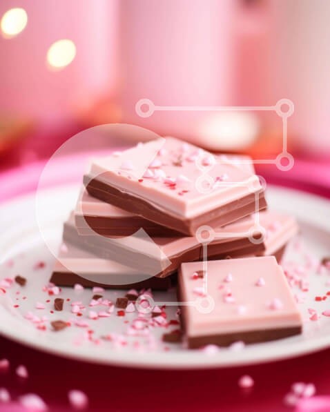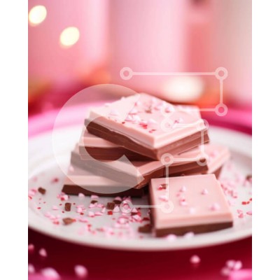 Υπάρχει δυνατότητα προσωποποίησης με δική σας φωτογραφία και προσαρμογής διαστάσεων κατόπιν παραγγελίας. Το συγεκεριμενο puzzle παρουσιαζει Η εικόνα απεικονίζει ένα ρομαντικό επιδόρπιο σοκολάτας με μια στοίβα από ροζ και λευκές μπάρες σοκολάτας σε ένα όμορφα διακοσμημένο λευκό πιάτο. Το φόντο περιλαμβάνει πολλά κεριά, ενισχύοντας τη ρομαντική ατμόσφαιρα. Ψεκασμοί είναι διάσπαρτοι γύρω από το πιάτο, υπονοώντας τη σ