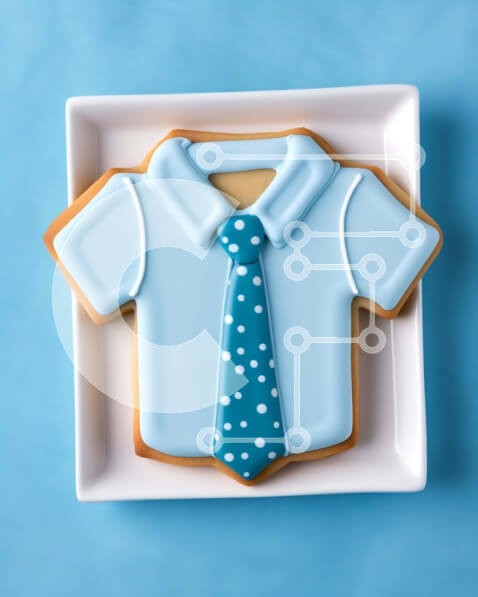 Υπάρχει δυνατότητα προσωποποίησης με δική σας φωτογραφία και προσαρμογής διαστάσεων κατόπιν παραγγελίας. Το συγεκεριμενο puzzle παρουσιαζει Η εικόνα δείχνει ένα μπισκότο διακοσμημένο με σχέδιο μπλε πουκάμισου με πουά και γραβάτα, κομψά τοποθετημένο σε ένα οβάλ σχήματος λευκό πιάτο στο πρώτο πλάνο. Ένα μοναδικό puzzle που συνδυάζει ποιότητα, αισθητική και εμπειρία. Υλικό: Κατασκευασμένο από ανθεκτικό και φυσικό ξ