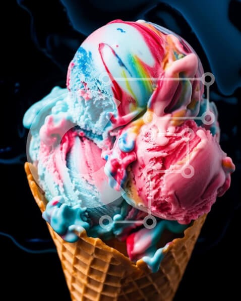 Υπάρχει δυνατότητα προσωποποίησης με δική σας φωτογραφία και προσαρμογής διαστάσεων κατόπιν παραγγελίας. Το συγεκεριμενο puzzle παρουσιαζει Η εικόνα παρουσιάζει ένα πολύχρωμο χωνάκι παγωτού γεμάτο με ροζ, μπλε και μοβ γεύσεις. Ο κώνος κάθεται πάνω από ένα μαύρο φόντο, δημιουργώντας μια ενδιαφέρουσα αντίθεση μεταξύ των φωτεινών χρωμάτων και του σκούρου φόντου. Αρκετές μεζούρες διαφορετικών γεύσεων είναι ορατές στο