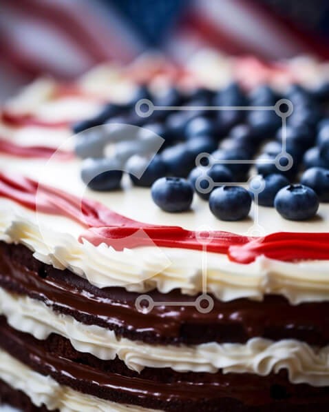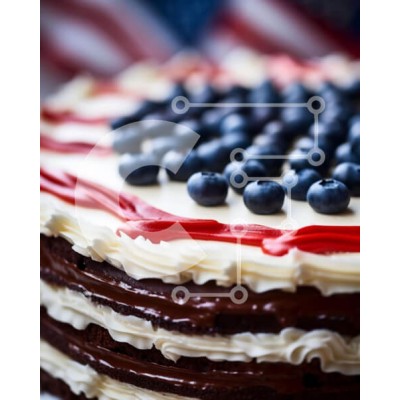 Υπάρχει δυνατότητα προσωποποίησης με δική σας φωτογραφία και προσαρμογής διαστάσεων κατόπιν παραγγελίας. Το συγεκεριμενο puzzle παρουσιαζει Η εικόνα παρουσιάζει ένα πολυεπίπεδο κέικ διακοσμημένο με κόκκινο, λευκό και μπλε γλάσο και καλύπτεται με βατόμουρα. Η τούρτα είναι τοποθετημένη μπροστά από μια αμερικανική σημαία, η οποία φαίνεται σε περίοπτη θέση σε πρώτο πλάνο. Υπάρχουν πολλές στρώσεις παγώματος πάνω από το