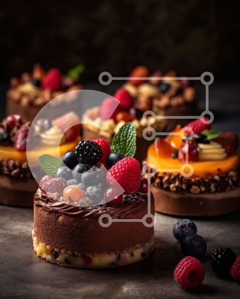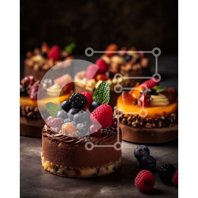 Υπάρχει δυνατότητα προσωποποίησης με δική σας φωτογραφία και προσαρμογής διαστάσεων κατόπιν παραγγελίας. Το συγεκεριμενο puzzle παρουσιαζει Αυτή η εικόνα παρουσιάζει μια ομάδα κέικ σοκολάτας με διάφορες επικαλύψεις φρέσκων φρούτων, όπως φράουλες, σμέουρα και βατόμουρα. Τα κέικ παρουσιάζονται σε σκούρο φόντο, επιτρέποντας στα πολύχρωμα φρούτα να ξεχωρίζουν. Η εικόνα είναι ιδανική για ιστότοπους και δημοσιεύσεις που