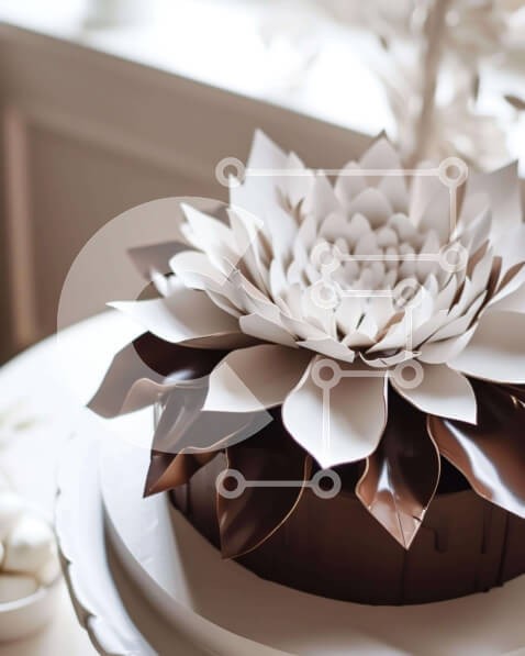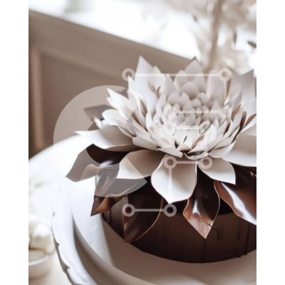 Υπάρχει δυνατότητα προσωποποίησης με δική σας φωτογραφία και προσαρμογής διαστάσεων κατόπιν παραγγελίας. Το συγεκεριμενο puzzle παρουσιαζει Η εικόνα παρουσιάζει ένα λευκό και καφέ κέικ με ένα περίπλοκα σχεδιασμένο λουλούδι στην κορυφή. Το κέικ τοποθετείται στο κέντρο του τραπεζιού, κάνοντάς το να φαίνεται μεγαλύτερο από ό,τι είναι στην πραγματικότητα. Πολλά μικρά κομμάτια σοκολάτας είναι διάσπαρτα γύρω από το κέικ