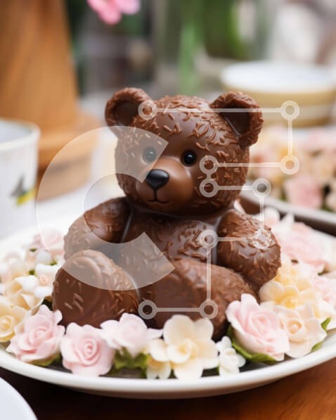 Υπάρχει δυνατότητα προσωποποίησης με δική σας φωτογραφία και προσαρμογής διαστάσεων κατόπιν παραγγελίας. Το συγεκεριμενο puzzle παρουσιαζει Η εικόνα παρουσιάζει ένα σοκολατένιο αρκουδάκι τοποθετημένο σε δύο λευκά πιάτα ανάμεσα σε μια διάταξη λουλουδιών, δημιουργώντας μια εξαιρετική παρουσίαση γλυκού. Συνοδευόμενο από πολλά φλιτζάνια, το σκηνικό προτείνει έναν απολαυστικό συνδυασμό με καφέ ή τσάι. Ένα μοναδικό puz