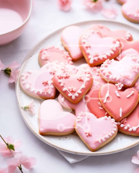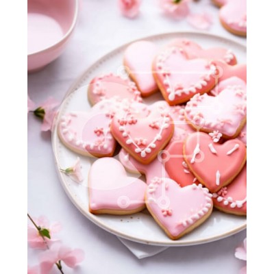 Υπάρχει δυνατότητα προσωποποίησης με δική σας φωτογραφία και προσαρμογής διαστάσεων κατόπιν παραγγελίας. Το συγεκεριμενο puzzle παρουσιαζει Αυτή η εικόνα παρουσιάζει ένα πιάτο με ροζ μπισκότα σε σχήμα καρδιάς, τοποθετημένα σε σχήμα καρδιάς. Είναι μια τέλεια αναπαράσταση της γιορτής του Αγίου Βαλεντίνου. Τα μπισκότα συνοδεύονται από ροζ λουλούδια και ένα μικρό μπολ. Η σύνθεση δημιουργεί μια ρομαντική και γιορτινή α