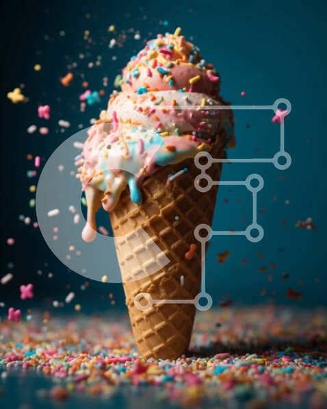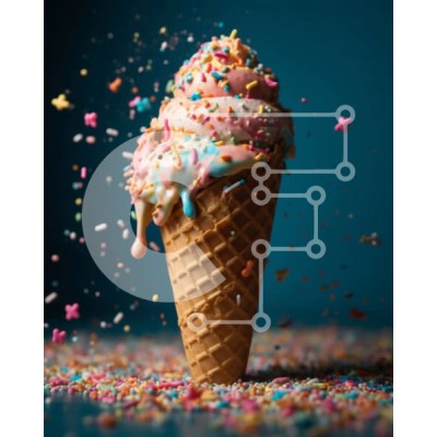 Υπάρχει δυνατότητα προσωποποίησης με δική σας φωτογραφία και προσαρμογής διαστάσεων κατόπιν παραγγελίας. Το συγεκεριμενο puzzle παρουσιαζει Αυτή η εικόνα είναι ένα χωνάκι παγωτού με πολύχρωμα ψεκάσματα. Ο κώνος είναι στο επίκεντρο ενώ το φόντο είναι σκούρο, δίνοντας έμφαση στα έντονα χρώματα των ψεκασμών. Είναι ιδανικό για κάθε έργο που σχετίζεται με φαγητό ή επιδόρπιο. Ένα μοναδικό puzzle που συνδυάζει ποιότητα,