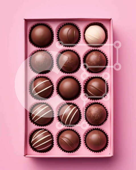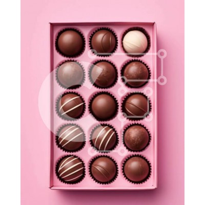 Υπάρχει δυνατότητα προσωποποίησης με δική σας φωτογραφία και προσαρμογής διαστάσεων κατόπιν παραγγελίας. Το συγεκεριμενο puzzle παρουσιαζει Αυτή η εικόνα παρουσιάζει ένα ροζ κουτί που περιέχει 12 τρούφες σοκολάτας σε ροζ φόντο. Η κοντινή προβολή δείχνει τους διαφορετικούς τύπους σοκολάτας, συμπεριλαμβανομένης της μαύρης, της λευκής και της σοκολάτας γάλακτος. Ένα μοναδικό puzzle που συνδυάζει ποιότητα, αισθητική