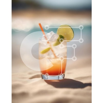 Υπάρχει δυνατότητα προσωποποίησης με δική σας φωτογραφία και προσαρμογής διαστάσεων κατόπιν παραγγελίας. Το συγεκεριμενο puzzle παρουσιαζει Αυτή η εικόνα παρουσιάζει ένα δροσιστικό κοκτέιλ που σερβίρεται σε ένα διάφανο ποτήρι σε μια αμμώδη παραλία. Το ποτό είναι γεμάτο με πάγο και έχει μια κλίση χρωμάτων από πορτοκαλί στο κάτω μέρος έως καθαρό στο πάνω μέρος. Μια φέτα λάιμ και μια πράσινη γαρνιτούρα σκαρφαλώνουν σ