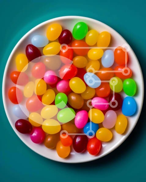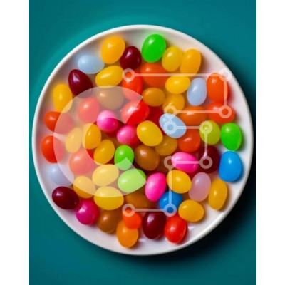Υπάρχει δυνατότητα προσωποποίησης με δική σας φωτογραφία και προσαρμογής διαστάσεων κατόπιν παραγγελίας. Το συγεκεριμενο puzzle παρουσιαζει Αυτή η εικόνα παρουσιάζει ένα λευκό μπολ γεμάτο με πολύχρωμα φασόλια ζελέ, διάσπαρτα στην επιφάνεια του τραπεζιού. Η ποικιλία περιλαμβάνει κόκκινα, πράσινα, μπλε και κίτρινα ζελέ. Μερικά από αυτά φαίνονται μεγαλύτερα από τα άλλα, υποδεικνύοντας ότι μπορεί να έχουν χωριστεί σε