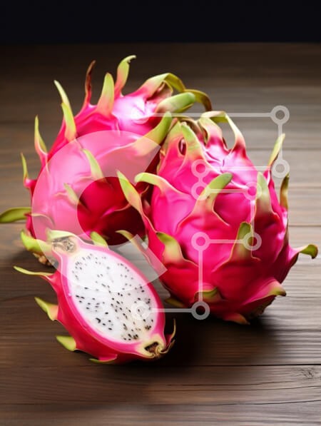 Υπάρχει δυνατότητα προσωποποίησης με δική σας φωτογραφία και προσαρμογής διαστάσεων κατόπιν παραγγελίας. Το συγεκεριμενο puzzle παρουσιαζει Η εικόνα παρουσιάζει πολλά ζωντανά φρούτα δράκου, γνωστά και ως πιτάγια, τοποθετημένα σε ξύλινη επιφάνεια. Οι καρποί έχουν μια εντυπωσιακή ροζ φλούδα στολισμένη με πράσινες καρφίτσες, ενώ ένα φρούτο είναι κομμένο στη μέση αποκαλύπτοντας τη λευκή σάρκα του με στίγματα με μικροσ