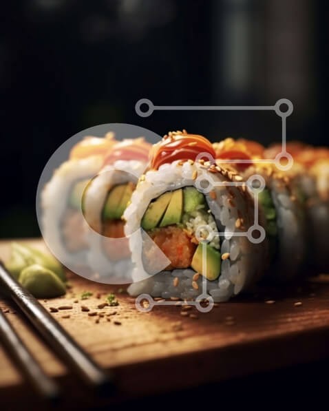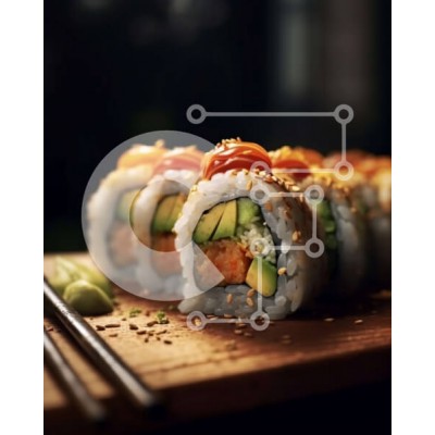 Υπάρχει δυνατότητα προσωποποίησης με δική σας φωτογραφία και προσαρμογής διαστάσεων κατόπιν παραγγελίας. Το συγεκεριμενο puzzle παρουσιαζει Αυτή η εικόνα παρουσιάζει ένα φρεσκοφτιαγμένο ρολό σούσι με αβοκάντο, σολομό και λαχανικά. Το σούσι τοποθετείται σε ξύλινη σανίδα και συνοδεύεται από ξυλάκια. Το πιάτο φαίνεται νόστιμο και είναι τέλειο για τους λάτρεις του σούσι ή για όσους θέλουν να δοκιμάσουν κάτι νέο. Ένα