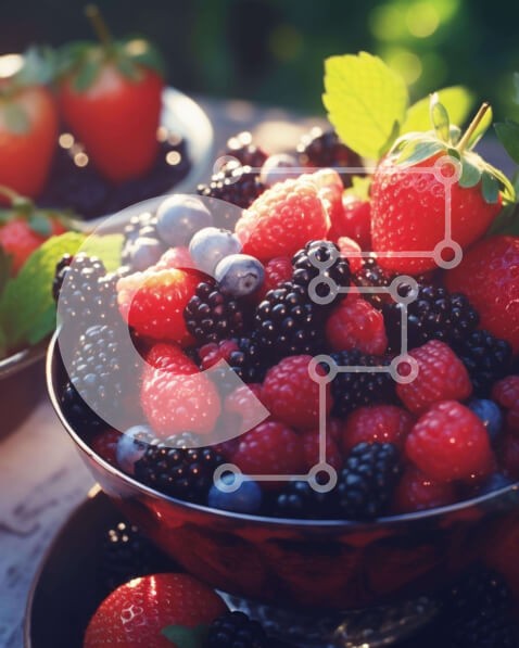 Υπάρχει δυνατότητα προσωποποίησης με δική σας φωτογραφία και προσαρμογής διαστάσεων κατόπιν παραγγελίας. Το συγεκεριμενο puzzle παρουσιαζει Η εικόνα παρουσιάζει δύο ασημένια μπολ γεμάτα με μια ποικιλία φρούτων, όπως φράουλες, σμέουρα και βατόμουρα. Υπάρχουν επίσης μερικά φύλλα στο τραπέζι, κάτι που προσθέτει στη συνολική οπτική έλξη της σκηνής. Συνολικά, η εικόνα δείχνει μια ελκυστική εμφάνιση φρέσκων φρούτων που