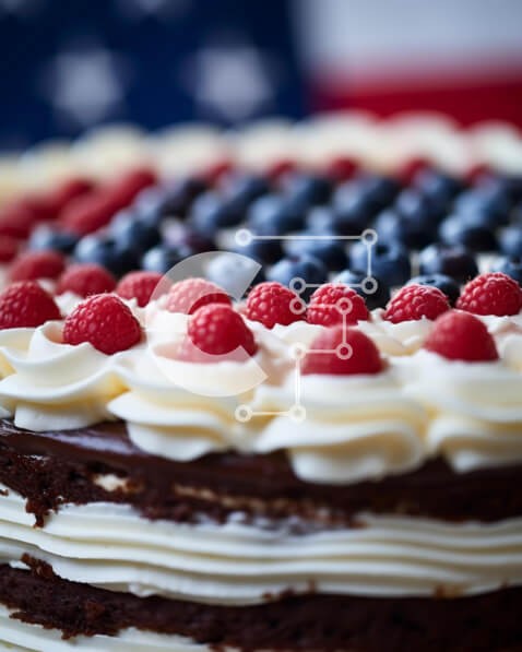 Υπάρχει δυνατότητα προσωποποίησης με δική σας φωτογραφία και προσαρμογής διαστάσεων κατόπιν παραγγελίας. Το συγεκεριμενο puzzle παρουσιαζει Η εικόνα δείχνει μια πατριωτική τούρτα με αμερικανική σημαία στολισμένη με κόκκινα, λευκά και μπλε χρώματα, σαντιγί και μια ποικιλία από μούρα. Η τούρτα είναι τοποθετημένη μπροστά από μια αμερικανική σημαία, ενισχύοντας το πατριωτικό θέμα. Διάφορα μούρα, όπως βατόμουρα, φράουλ