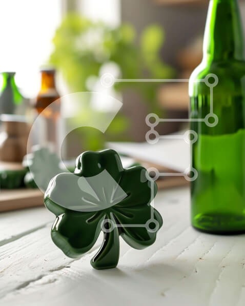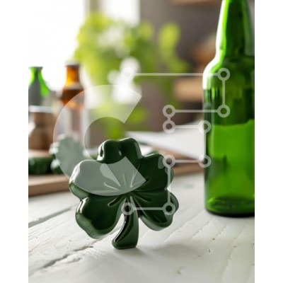 Υπάρχει δυνατότητα προσωποποίησης με δική σας φωτογραφία και προσαρμογής διαστάσεων κατόπιν παραγγελίας. Το συγεκεριμενο puzzle παρουσιαζει Η εικόνα δείχνει ένα πράσινο μπουκάλι μπύρας να κάθεται στο τραπέζι δίπλα σε δύο σουβέρ σε σχήμα τριφυλλιού. Υπάρχει επίσης ένα άδειο γυάλινο μπουκάλι κοντά, το οποίο θα μπορούσε να χρησιμοποιηθεί για την αποθήκευση ή το σερβίρισμα της μπύρας. Επιπλέον, υπάρχουν πολλά μπουκάλι