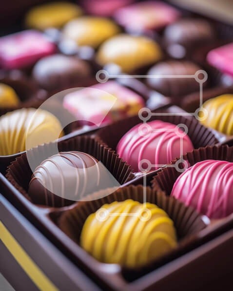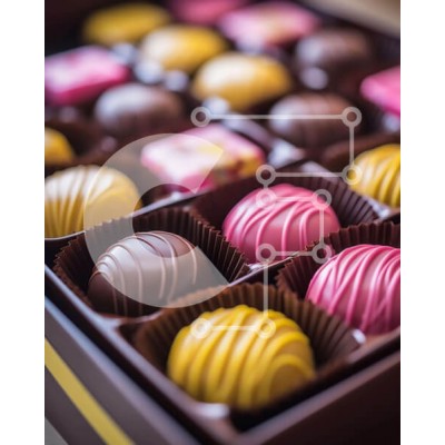 Υπάρχει δυνατότητα προσωποποίησης με δική σας φωτογραφία και προσαρμογής διαστάσεων κατόπιν παραγγελίας. Το συγεκεριμενο puzzle παρουσιαζει Η εικόνα δείχνει μια ποικιλία από σοκολάτες σε ένα καφέ κουτί. Οι καραμέλες έρχονται σε διάφορα χρώματα και σχήματα, με μερικά να φαίνονται μεγαλύτερα από άλλα, υπονοώντας την προοριζόμενη χρήση τους για κοινή χρήση ή ατομική κατανάλωση. Ένα μοναδικό puzzle που συνδυάζει ποιό