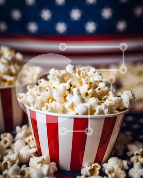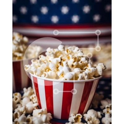 Υπάρχει δυνατότητα προσωποποίησης με δική σας φωτογραφία και προσαρμογής διαστάσεων κατόπιν παραγγελίας. Το συγεκεριμενο puzzle παρουσιαζει Η εικόνα παρουσιάζει δύο κόκκινα, λευκά και μπλε ριγέ μπολ ποπ κορν τοποθετημένα σε ένα τραπέζι με μια αμερικανική σημαία στο φόντο. Αρκετές σακούλες ποπ κορν είναι επίσης ορατές στο τραπέζι, υποδεικνύοντας την κατανάλωση από πολλά άτομα. Ένα μοναδικό puzzle που συνδυάζει ποι
