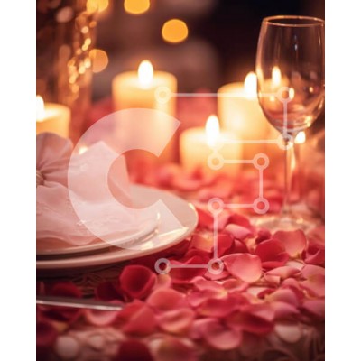 Υπάρχει δυνατότητα προσωποποίησης με δική σας φωτογραφία και προσαρμογής διαστάσεων κατόπιν παραγγελίας. Το συγεκεριμενο puzzle παρουσιαζει Η εικόνα δείχνει ένα ρομαντικό τραπέζι με το φως των κεριών και τα ροζ πέταλα που δημιουργούν μια ζεστή ατμόσφαιρα. Ένα πιάτο, χαρτοπετσέτα, ποτήρι κρασιού και ασημικά είναι κομψά τοποθετημένα στο τραπέζι, στολισμένα με ροδοπέταλα για μια νότα ρομαντισμού. Στο βάθος, τα κεριά