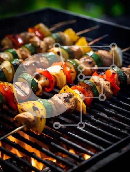 Υπάρχει δυνατότητα προσωποποίησης με δική σας φωτογραφία και προσαρμογής διαστάσεων κατόπιν παραγγελίας. Το συγεκεριμενο puzzle παρουσιαζει Η εικόνα δείχνει μια πολύχρωμη σειρά από σουβλάκια σε μια σχάρα, με μια ποικιλία από ψητά λαχανικά και μαριναρισμένο κρέας. Τα σουβλάκια είναι τακτοποιημένα, με ζωηρές πιπεριές, κολοκυθάκια, κρεμμύδια και μανιτάρια, όλα μαγειρεμένα στην τελειότητα. Το φόντο δείχνει μια ζωντανή