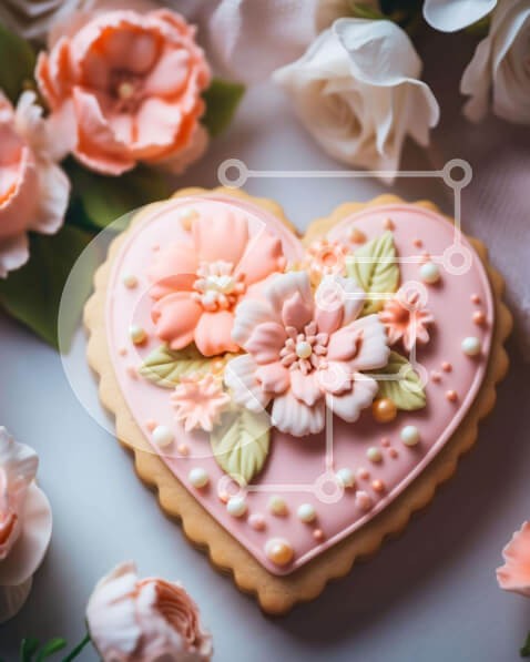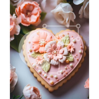 Υπάρχει δυνατότητα προσωποποίησης με δική σας φωτογραφία και προσαρμογής διαστάσεων κατόπιν παραγγελίας. Το συγεκεριμενο puzzle παρουσιαζει Η εικόνα παρουσιάζει ένα ροζ μπισκότο σε σχήμα καρδιάς διακοσμημένο με λουλούδια, το οποίο τοποθετείται στη μέση μιας διάταξης λευκών και ροζ λουλουδιών. Διάφορα άλλα μπισκότα είναι διάσπαρτα γύρω από το τραπέζι, μερικά πιο περίτεχνα διακοσμημένα από άλλα. Η σκηνή υποδηλώνει ό
