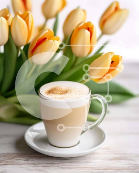 Υπάρχει δυνατότητα προσωποποίησης με δική σας φωτογραφία και προσαρμογής διαστάσεων κατόπιν παραγγελίας. Το συγεκεριμενο puzzle παρουσιαζει Αυτή η εικόνα δείχνει ένα φλιτζάνι καφέ με σαντιγί και κίτρινες τουλίπες σε πρώτο πλάνο. Ένα άδειο πιατάκι τοποθετείται δίπλα στο φλιτζάνι και τα λουλούδια είναι τοποθετημένα γύρω από την άκρη του τραπεζιού, δημιουργώντας ένα απολαυστικό και γαλήνιο σκηνικό. Ένα μοναδικό puzz