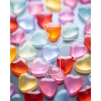 Υπάρχει δυνατότητα προσωποποίησης με δική σας φωτογραφία και προσαρμογής διαστάσεων κατόπιν παραγγελίας. Το συγεκεριμενο puzzle παρουσιαζει Αυτή η εικόνα παρουσιάζει μια ομάδα από πολύχρωμα κομμάτια καραμέλας σε σχήμα καρδιάς διατεταγμένα σε διάφορα χρώματα και σχήματα. Μερικές από τις καρδιές είναι μεγαλύτερες από άλλες και υπάρχουν και οι δύο επιπλέουσες και ξαπλωμένες στο έδαφος. Τα ζωηρά χρώματα προσθέτουν στη