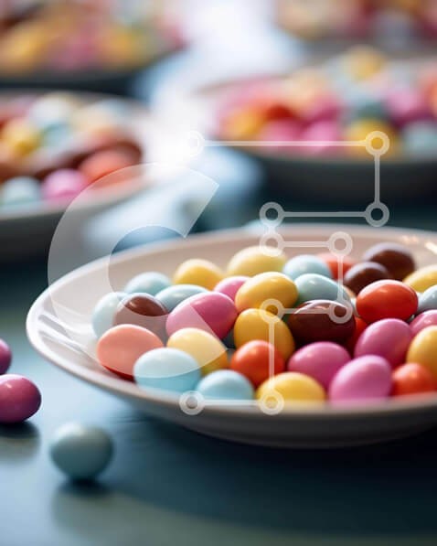 Υπάρχει δυνατότητα προσωποποίησης με δική σας φωτογραφία και προσαρμογής διαστάσεων κατόπιν παραγγελίας. Το συγεκεριμενο puzzle παρουσιαζει Η εικόνα δείχνει μια σειρά από λευκά πιάτα γεμάτα με πολύχρωμα ζαχαρωτά. Κάποιες καραμέλες φαινομενικά αιωρούνται στον αέρα, ενώ άλλες ακουμπούν στο τραπέζι. Επιπλέον, υπάρχουν διάφορα μπολ με διάφορα είδη καραμέλας σε διαφορετικές αποχρώσεις, όπως κόκκινο, πράσινο, μπλε, κίτρ