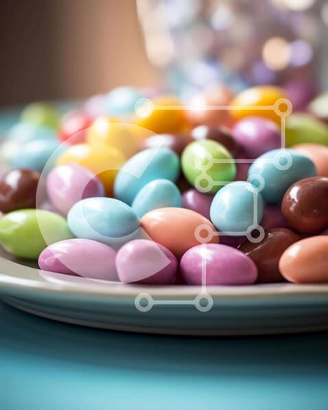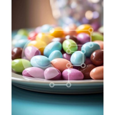 Υπάρχει δυνατότητα προσωποποίησης με δική σας φωτογραφία και προσαρμογής διαστάσεων κατόπιν παραγγελίας. Το συγεκεριμενο puzzle παρουσιαζει Η εικόνα παρουσιάζει ένα λευκό πιάτο γεμάτο με πολύχρωμα ζαχαρωτά, τα οποία είναι διάσπαρτα στην επιφάνεια του τραπεζιού. Υπάρχει μια ποικιλία από καραμέλες διαφορετικών χρωμάτων στο πιάτο, όπως κόκκινο, κίτρινο, πράσινο, μπλε και μωβ. Ένα γυάλινο βάζο υπάρχει επίσης στην εικό