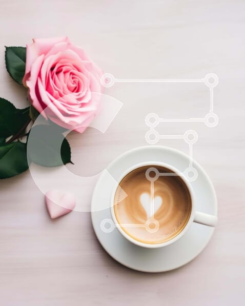 Υπάρχει δυνατότητα προσωποποίησης με δική σας φωτογραφία και προσαρμογής διαστάσεων κατόπιν παραγγελίας. Το συγεκεριμενο puzzle παρουσιαζει Η εικόνα απεικονίζει ένα φλιτζάνι καφέ με κρέμα σε σχήμα καρδιάς, καθώς και δύο ροζ τριαντάφυλλα τοποθετημένα στο τραπέζι δίπλα. Υπάρχει επίσης ένα άδειο πιατάκι στο βάθος, το οποίο θα μπορούσε να χρησιμοποιηθεί για να χωρέσει άλλα αντικείμενα, όπως σνακ ή επιδόρπια. Συνολικά,