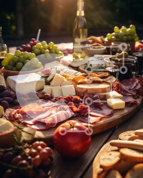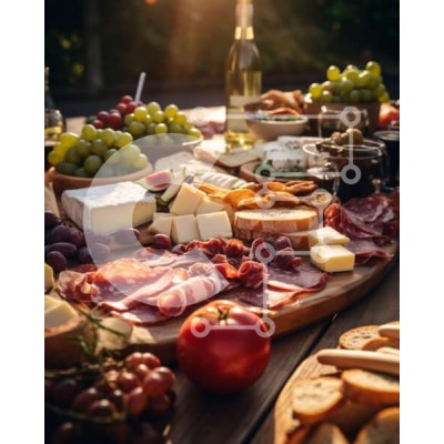 Υπάρχει δυνατότητα προσωποποίησης με δική σας φωτογραφία και προσαρμογής διαστάσεων κατόπιν παραγγελίας. Το συγεκεριμενο puzzle παρουσιαζει Η εικόνα παρουσιάζει μια μεγάλη πιατέλα με διάφορα είδη τροφίμων, όπως τυρί, κρέας, ψωμί, σταφύλια και ελιές. Υπάρχουν επίσης πολλά μπουκάλια κρασί στο τραπέζι, τα οποία θα μπορούσαν να χρησιμοποιηθούν για να συνοδεύσουν το φαγητό. Συνολικά, η σκηνή είναι γεμάτη με μια σειρά α