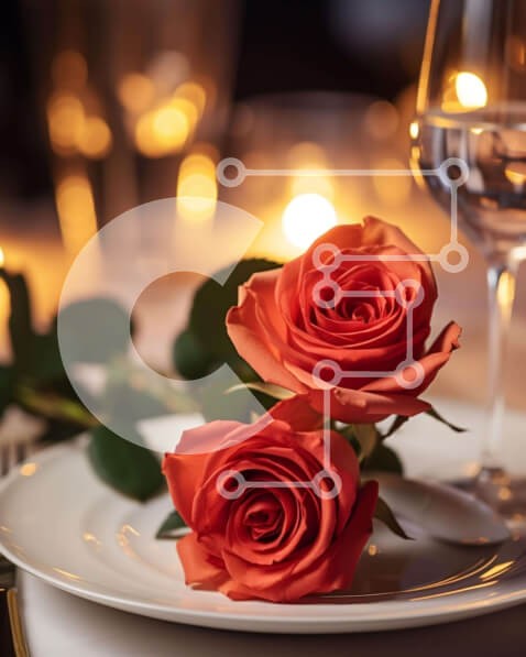 Υπάρχει δυνατότητα προσωποποίησης με δική σας φωτογραφία και προσαρμογής διαστάσεων κατόπιν παραγγελίας. Το συγεκεριμενο puzzle παρουσιαζει Αυτή η εικόνα απεικονίζει ένα ρομαντικό σκηνικό δείπνου με δύο τριαντάφυλλα τοποθετημένα σε ένα λευκό πιάτο στο κέντρο του τραπεζιού. Γύρω από το πιάτο υπάρχουν κηροπήγια που δημιουργούν μια ρομαντική ατμόσφαιρα. Ένα ποτήρι κρασί, ασημικά και σκεύη υπάρχουν επίσης στο πιάτο. Α
