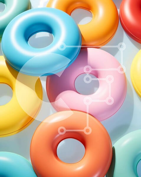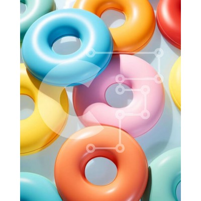 Υπάρχει δυνατότητα προσωποποίησης με δική σας φωτογραφία και προσαρμογής διαστάσεων κατόπιν παραγγελίας. Το συγεκεριμενο puzzle παρουσιαζει Η εικόνα παρουσιάζει μια ποικιλία από πολύχρωμα ντόνατς στοιβαγμένα το ένα πάνω στο άλλο σε διαφορετικά σχήματα και χρώματα, όπως κόκκινο, μπλε, κίτρινο, πράσινο και πορτοκαλί. Τοποθετούνται στρατηγικά σε ένα τραπέζι, υποδεικνύοντας ότι μπορούν να χρησιμεύσουν τόσο ως διακοσμη