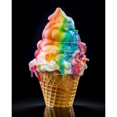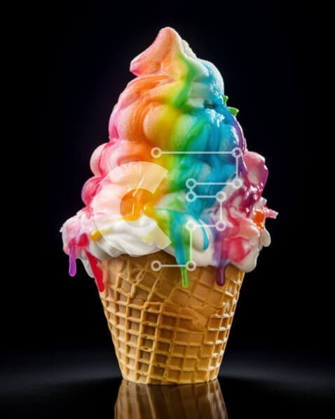 Υπάρχει δυνατότητα προσωποποίησης με δική σας φωτογραφία και προσαρμογής διαστάσεων κατόπιν παραγγελίας. Το συγεκεριμενο puzzle παρουσιαζει Η εικόνα δείχνει ένα πολύχρωμο χωνάκι παγωτού με γλάσο στο χρώμα του ουράνιου τόξου. Το χωνάκι είναι γεμάτο με μια ποικιλία από επιδόρπια, με διαφορετικά χρώματα και σχέδια. Μπορεί επίσης να περιλαμβάνει πασπαλίσματα, τσιπς σοκολάτας, ξηρούς καρπούς ή επικαλύψεις φρούτων. Ένα
