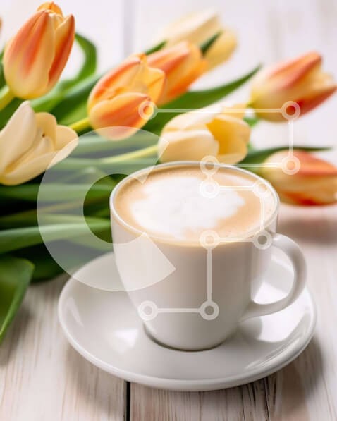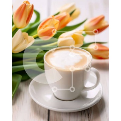 Υπάρχει δυνατότητα προσωποποίησης με δική σας φωτογραφία και προσαρμογής διαστάσεων κατόπιν παραγγελίας. Το συγεκεριμενο puzzle παρουσιαζει Αυτή η εικόνα παρουσιάζει ένα φλιτζάνι καφέ με σαντιγί και πορτοκαλί τουλίπες τοποθετημένες σε ένα τραπέζι. Υπάρχει επίσης ένα άδειο πιατάκι δίπλα στο φλιτζάνι, υποδηλώνοντας τη δυνατότητα περισσότερων φλιτζανιών στην εικόνα. Τα λουλούδια εμφανίζουν διάφορα στάδια ανθοφορίας,