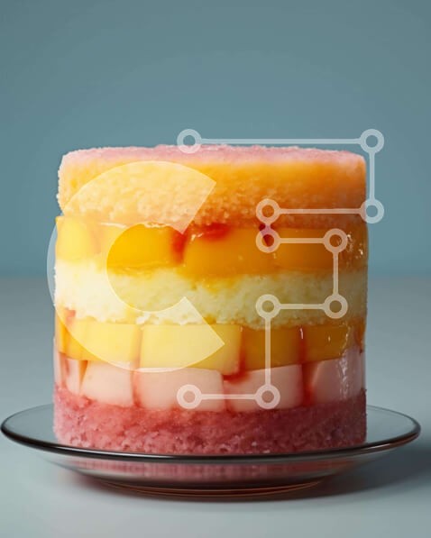 Υπάρχει δυνατότητα προσωποποίησης με δική σας φωτογραφία και προσαρμογής διαστάσεων κατόπιν παραγγελίας. Το συγεκεριμενο puzzle παρουσιαζει Η εικόνα παρουσιάζει ένα πολύχρωμο, πολυεπίπεδο κέικ που κάθεται πάνω από ένα άδειο γυάλινο πιάτο. Το κέικ αποτελείται από διάφορα είδη φρούτων, όπως ροδάκινα, μάνγκο και ανανάδες. Φαίνεται να είναι φρεσκοφτιαγμένο, καθώς έχει διακοσμηθεί με έντονα χρώματα και σχέδια. Ένα μον